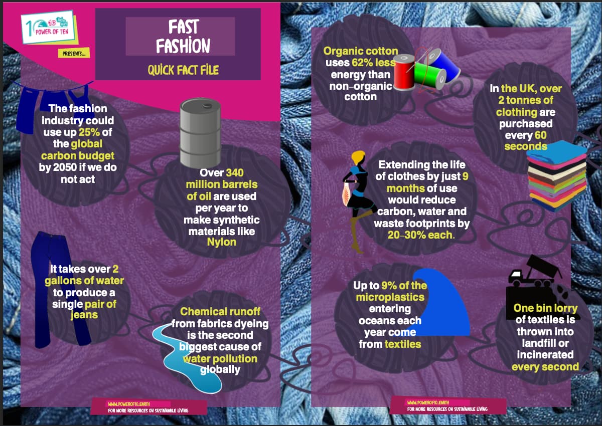 Fast fashion is quickly becoming one of the worst environmental disasters of this era. Defined as “fashion that is designed to be quickly put through production to capitalise on trends”, it directly goes against our Power of 10 messaging.