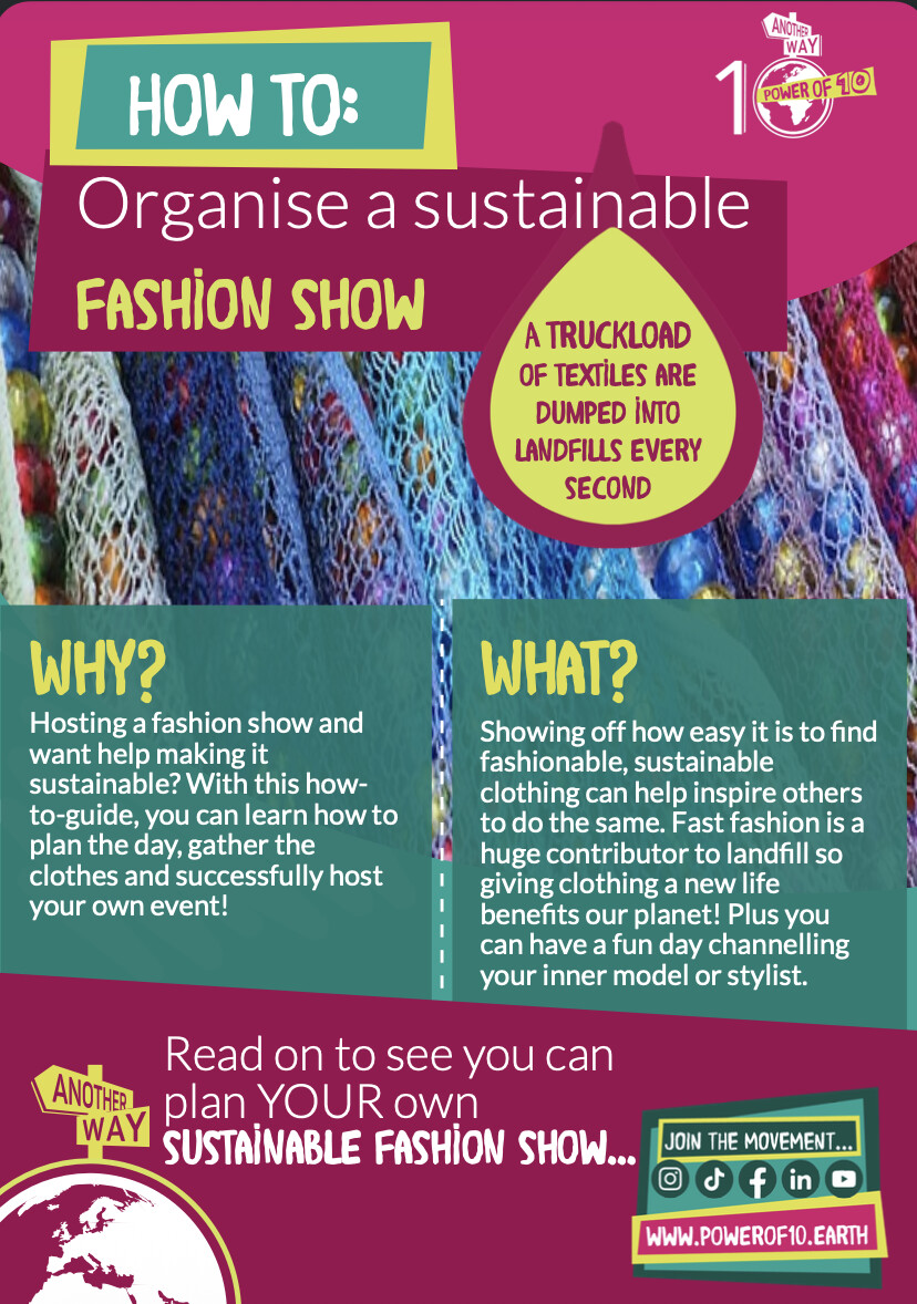 Hosting a fashion show can be a great way to bring awareness about fast fashion and encourage people to source their clothes from different places.